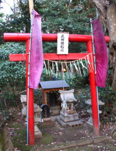 佐波波地祇神社は初め、大津の澤山(佐波山)に鎮座した。その後、東堂下に移り、さらに現在地に遷座したという。 これは境内社の武田姫稲荷大明神を奉る武田姫稲荷である。朱色の鳥居が華やかである。 こちらは丸徳稲荷神社という。小さな狐の神使いがたく…