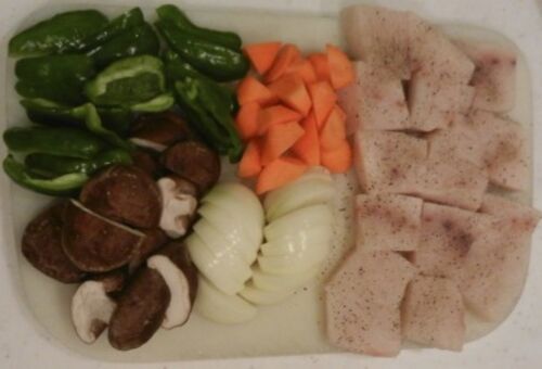 昔時々作っていたカジキの洋風料理を久しぶりに作ってみた(4人分)。 ① タマネギ1個はくし形切り、ニンジン1本は乱切り、ピーマン4個は縦四つ切り、シイタケ6個は半分に切り、カジキ4切れは四つ切りにして両面に塩胡椒する。 ② サラダ油大1を熱した…