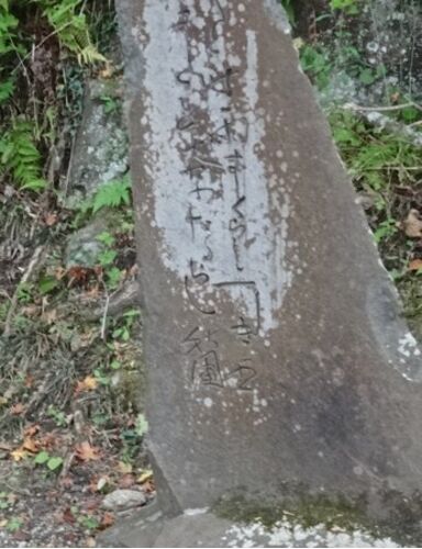 頭が切れて残念だが、道端に依田秋圃の歌碑があった。東京出身の秋圃は名古屋に住み、木材関係の仕事でこの山野を愛したという。 ほろほろと時雨すくらし一しきり 小夜やましくれ谷わたるらし 秋圃 もみじのトンネルは巴川沿いをゆるやかに上っていき、右に…