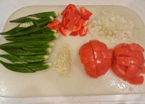 アフリカ料理のガンボ(オクラ)スープ風の鍋を試してみた(2人前)。 ① オクラ(1ネット)はガクをぐるりとむき、斜め半分に切る。トマト1個はざく切り、パプリカ1/6は2cm角に切り、タマネギ1/4とニンニク1片はみじん切りにする。 ② 鶏手羽先4本は骨…