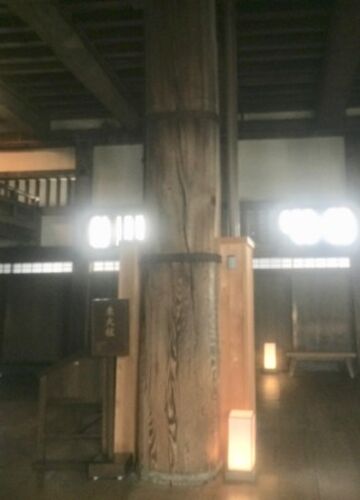 大天守からの展望を楽しんだ後は、ひたすら下っていく。これは3階の東大柱である。東大柱は上下で継がれることなくそのまま伸びている。根元は腐ったために補修を受けたが、元々は長さ24.8mの樅の一本柱である。西柱と同様、所々、金属のバンドで補強がされ…