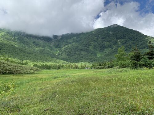 栂池高原自然園 さらに右手を眺めると、自然園から白馬大池方面の尾根が見えるが、おおかた雲に覆われていた。 オヤマリンドウ この青紫色の花は、日本特産種のオヤマリンドウ(Gentiana makinoi)。中部地方以北の亜高山帯や湿原、草地に生える多年草。茎の…