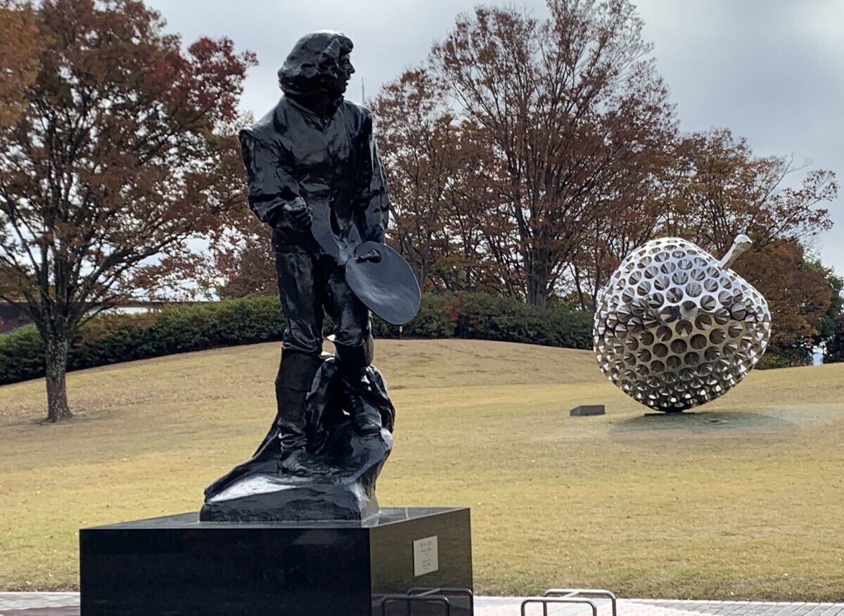 こちらの男性像は、オーギュスト・ロダン作の「クロード・ロラン(1880-92)」であり、右には先ほどの佐藤正明作「ザ・ビッグアップルNo.45」が見える。